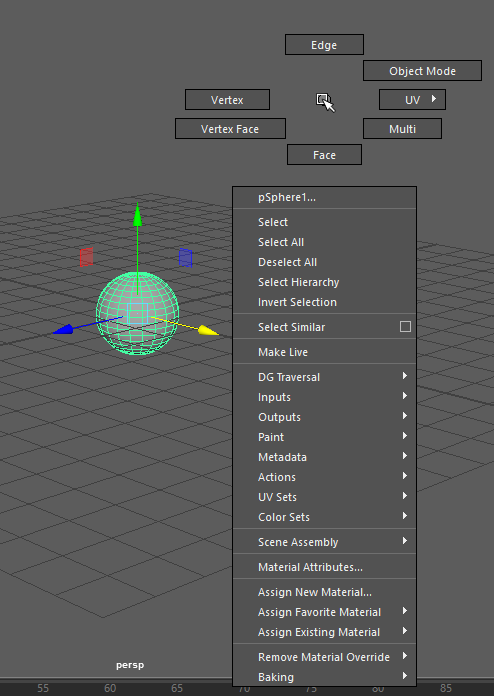 In Maya wird jedes Element (Kurven, Polygon-Objekte, Texturen, etc.) als Node bzw. als Netzwerk von verbundenen Nodes repräsentiert. Man kann sich die Nodes visualisieren lassen im Hypergraph. Shading Nodes werden im Hypershade visualisiert. Um Werte von Nodes zu verändern benutzt man den Attribute Editor oder die Channel Box. Eine neu erzeugte Nurbs-Sphere hat vier Nodes (Create > Nurbs Primitive > Sphere):