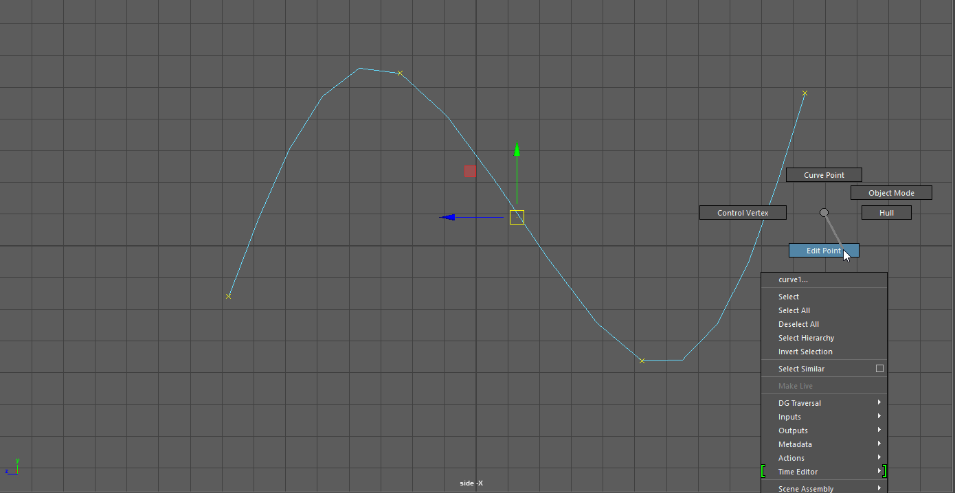 Ein Curve Point ist ein selektierter Punkt auf der Kurve, der nicht verändert werden kann. (Ähnlich wie der Isoparm Modus bei Surfaces)
