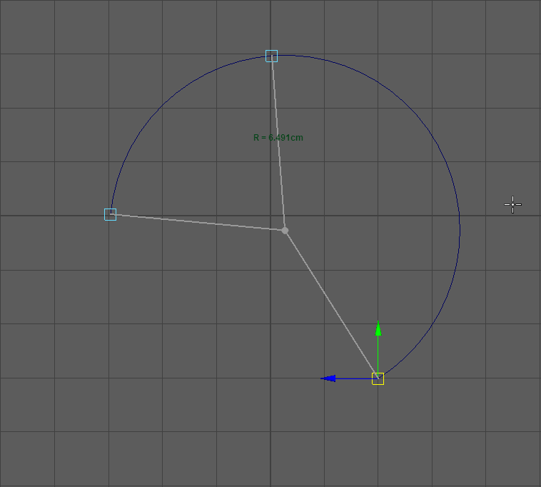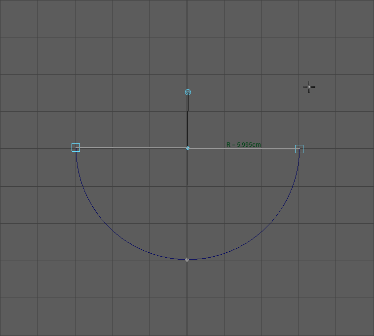 Auch dieses Werkzeug erstellt ein Kreissegment. Man definiert den Anfang und das Ende des Kreises und es wird ein Halbkreis erstellt. Durch klicken auf den Modifier kann man bestimmen ob das Kreissegment über oder unterhalb der beiden Punkte erstellt wird. Zusätzlich lässt sich der Mittelpunkt des Kreises verschieben um ein anderes Kreissegment zu erhalten.