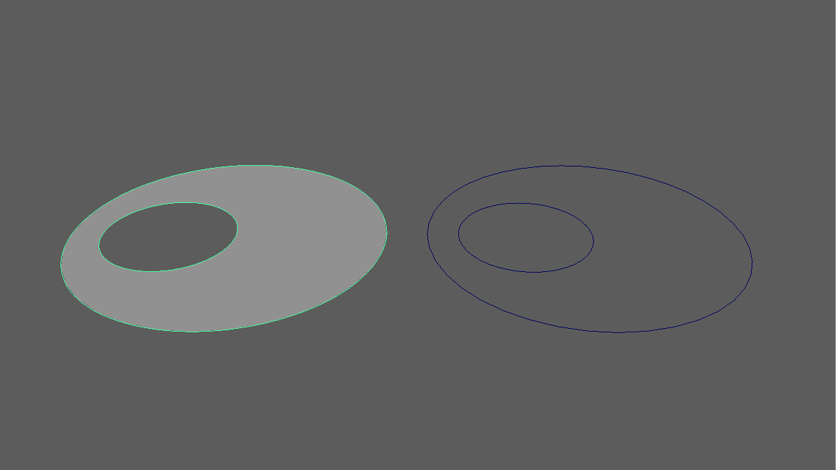 Ein Planar ist eine Fläche, die definiert wird durch eine in einer Ebene liegende geschlossene Kurve (z.B. Kreise, Rechtecke). Es ist auch möglich mehrere Kurven zu verwenden. Liegt eine Kurve innerhalb einer anderen Kurve, so wird das innere Objekt ausgeschnitten.