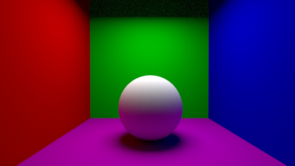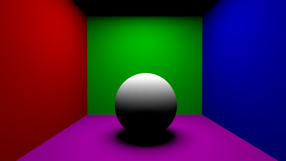 In dieser Beispielszene ist ein weisser Ball in einem Raum mit bunten Wänden.