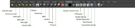 Die “Rendering”-Shelf ist eingeteilt in Lichter, Camera, Basis Shader und Render Einstellungen