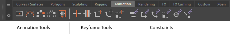 Die Animation Shelf ist in drei Gruppen eingeteilt: