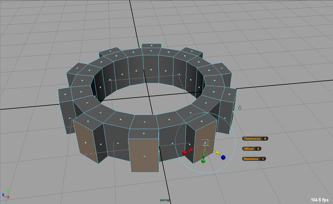 Das große Zahnrad (pPipe1) selektieren und in der Channel Box RotateY = 360