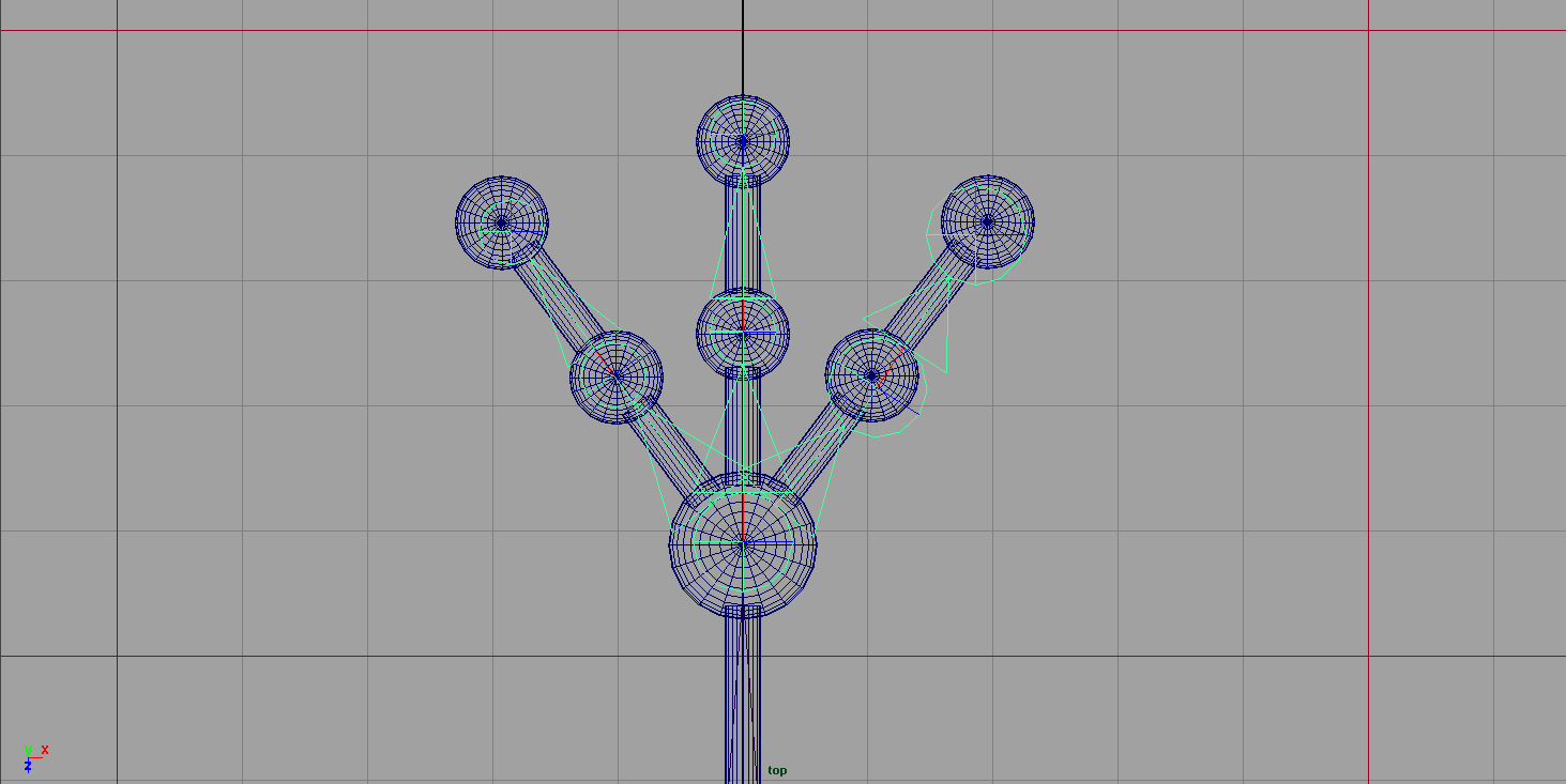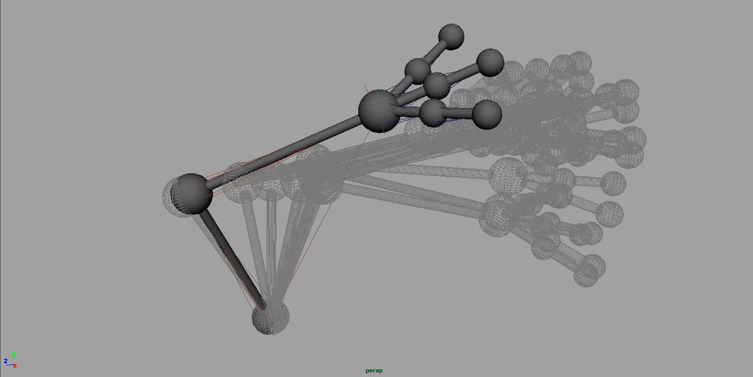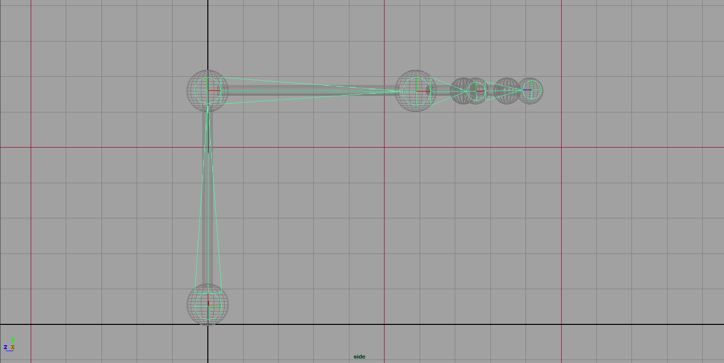 (Side View) Skeleton > Joint Tool das Basis Skelett zeichnen indem man sich an den Spheres orientiert.
