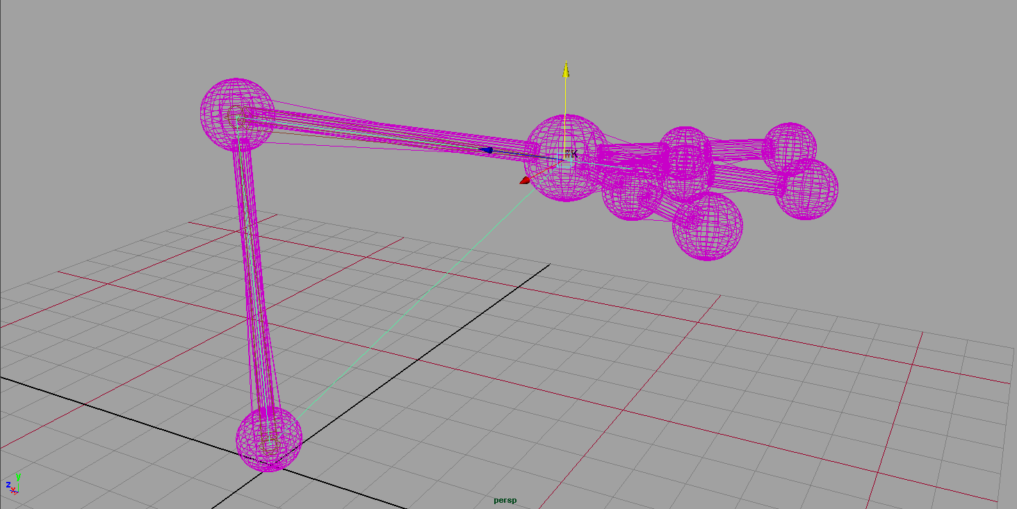 Mit Inverse Kinematics lassen sich komplexere Objekte einfach animieren. Hierfür wird ein Skelett aus Joints und IK Handles erzeugt und dann die Geometrie als Skin an das Skelett gebunden.